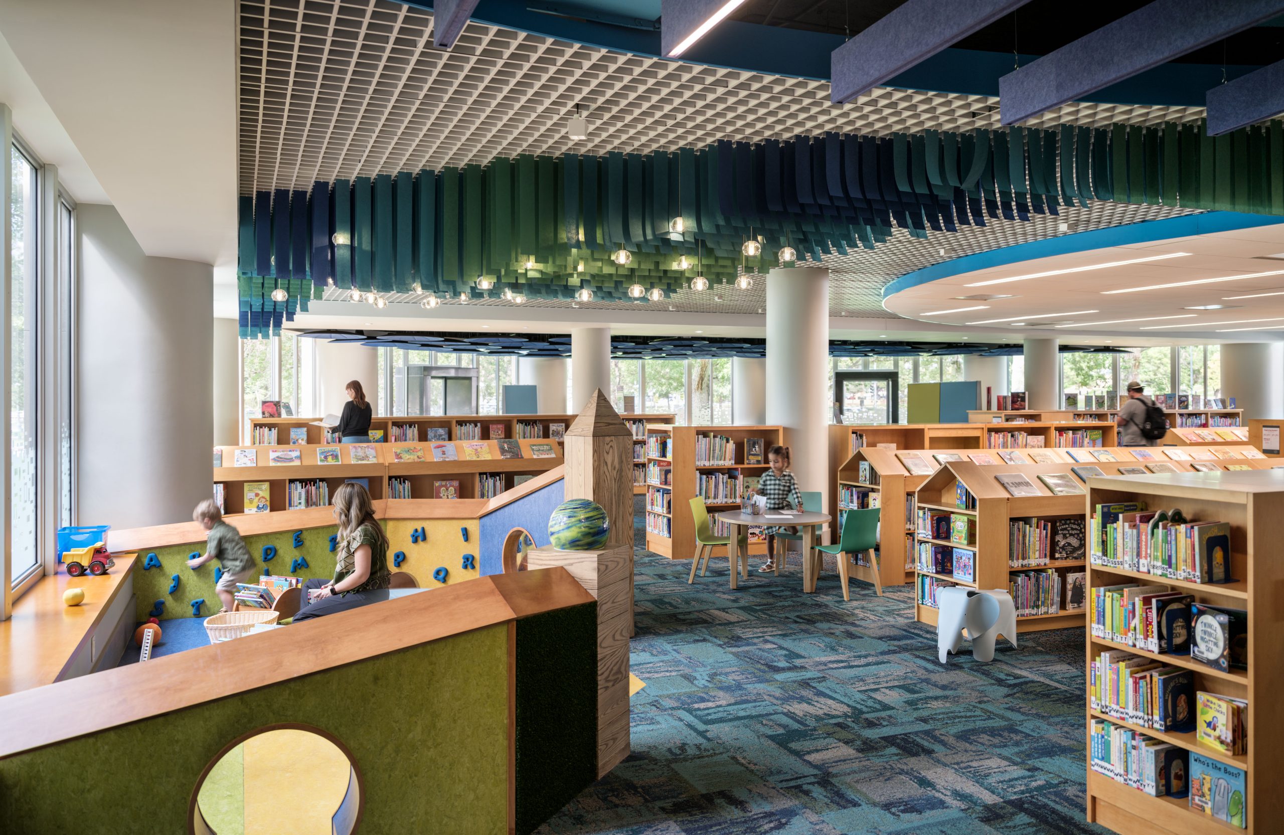 The project was delivered through a phased remodel to maintain continuity of service for the community. The Children’s Area was prioritized for immediate opening, with the larger LPS spaces completed nine months later. This phased approach allowed the library to remain operational while creating engaging, functional environments that support learning, programming, and staff operations.