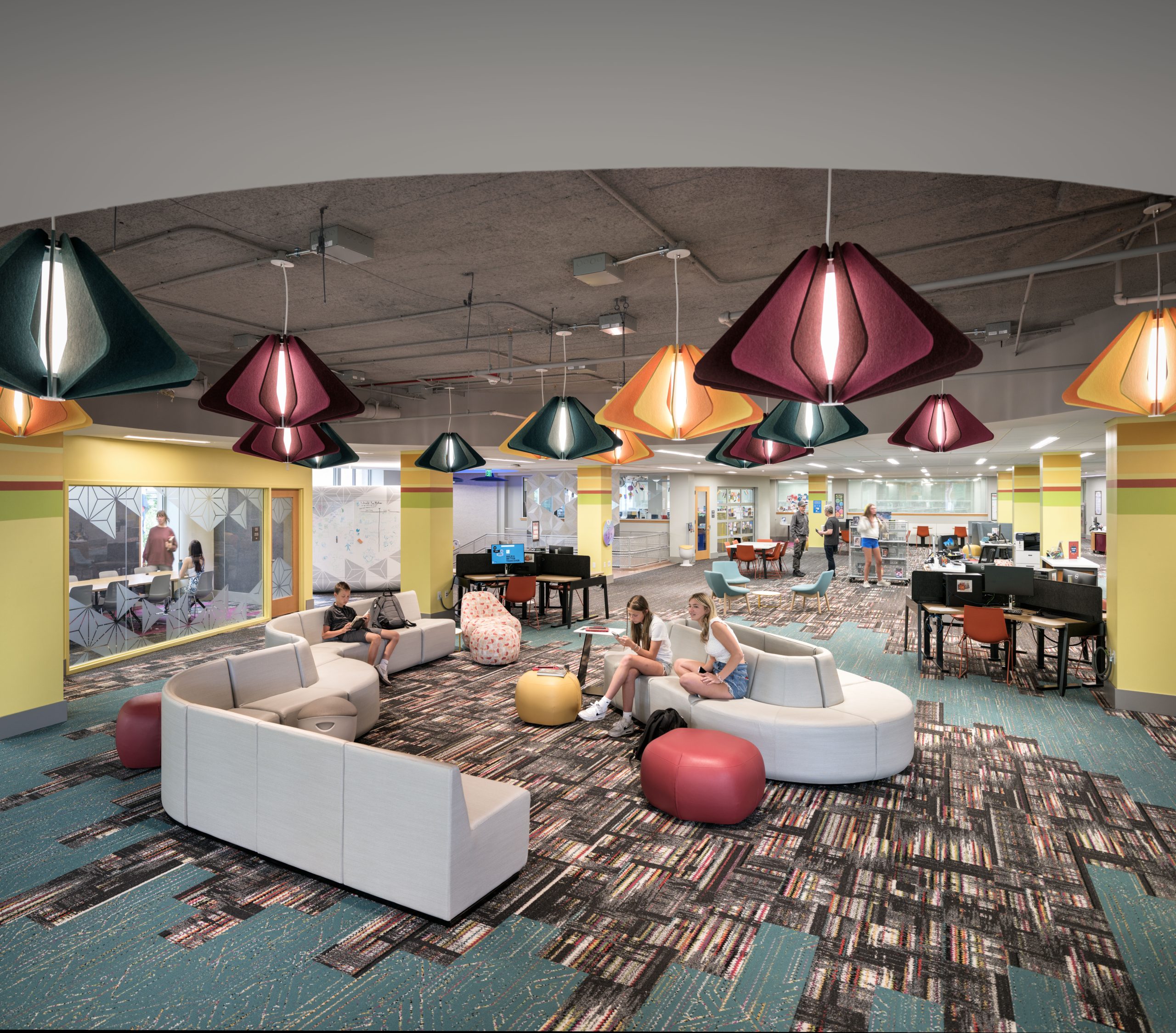 Slate partnered closely with the design team and key library staff to evaluate and select furnishings that support a wide range of programmatic needs across this 40,000-square-foot library. The scope of work included the Children’s Area, large programming spaces, security zones, and back-of-house staff areas, each requiring thoughtful solutions tailored to how the spaces are used day to day.